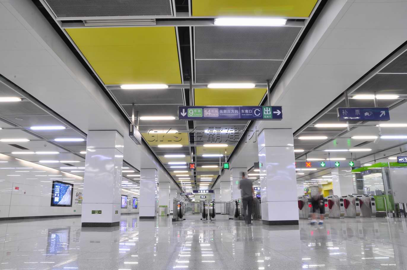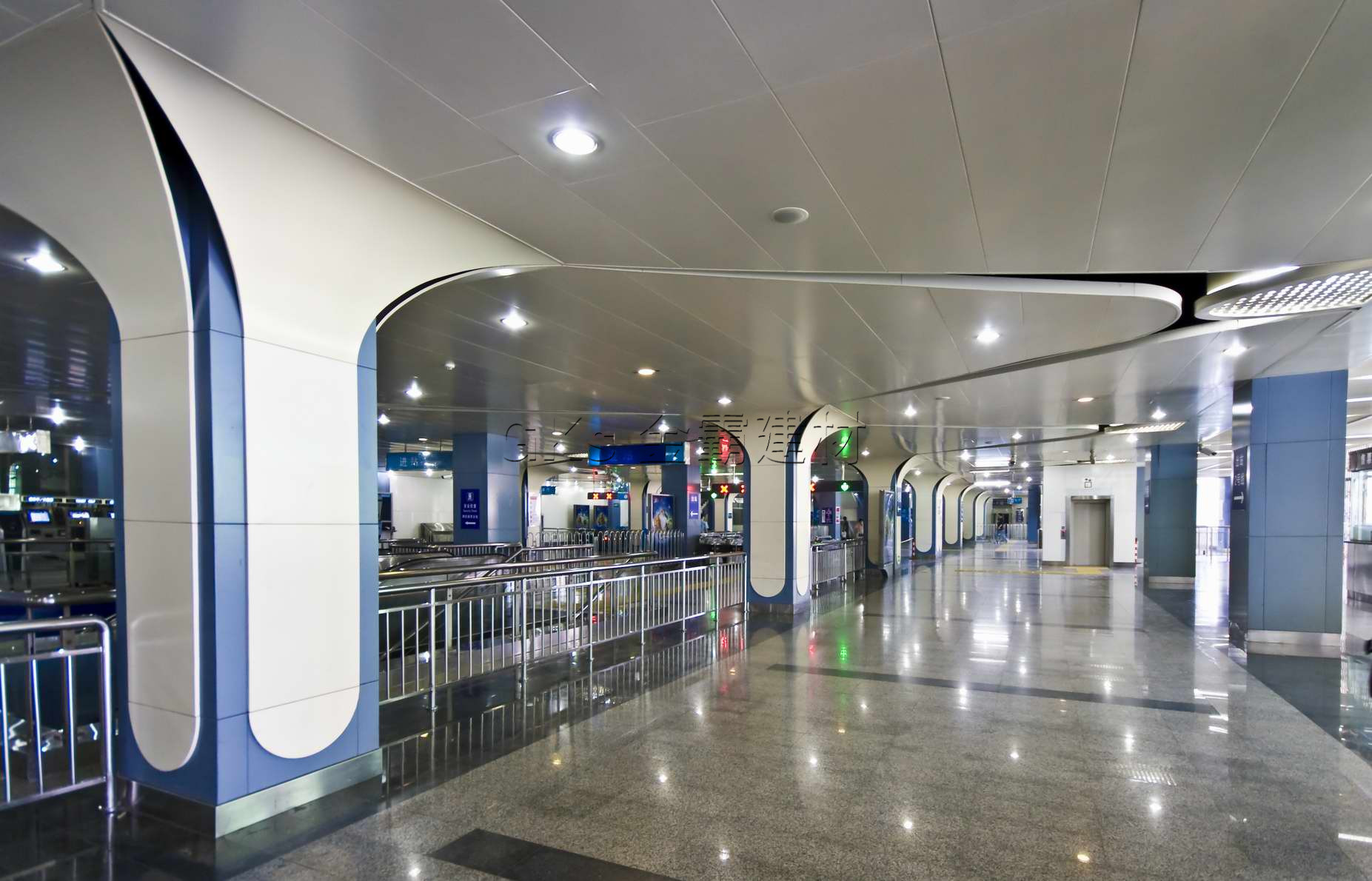北京地铁建设经历多个时代的发展,内部装饰也体现了当时装饰设计的趋向。近年由于经济的飞速发展,北京地铁内部装饰也有了更多的选择和创意,像6号线车公庄西站的圆拱形铝板天花,宽阔的站台配上粗大的古式设计支撑圆柱,尽显庄严与古典;机场专线的2号航站楼站,则是后现代的太空意念设计,由众多三角铝板组成的多块不规则吊顶,镶嵌着漫天“繁星”,让人似置身太空船内的感觉;还有规矩的彩色铝单板与冲孔铝板组合、铝合金垂片与造型铝板的组合等等,现代、简洁、时尚、创意都得到体现。供货时间:2014