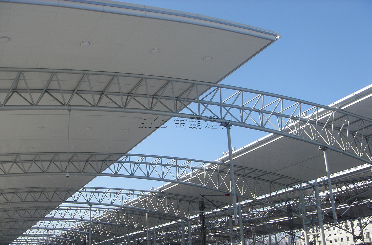 沈阳北站的各个站台均为国际上普遍采用的等高列车地板站台,是当时东北地区唯一采用等高列车地板站台的车站。站台采用无站台柱雨棚,由近5000吨无缝钢管吊装建成,总建筑面积5.72万平方米。顶棚设计为弧形结构,每个弧形顶棚上装有三块独立的曲面遮雨棚,共同覆盖两条不同行驶方向的车轨。遮雨棚内面吊顶及檐口部位为的乐鱼(中国)®米白色曲面铝单板,尺寸精确、色泽均匀,整个饰面铝板浑然一体,外形十分大气美观。