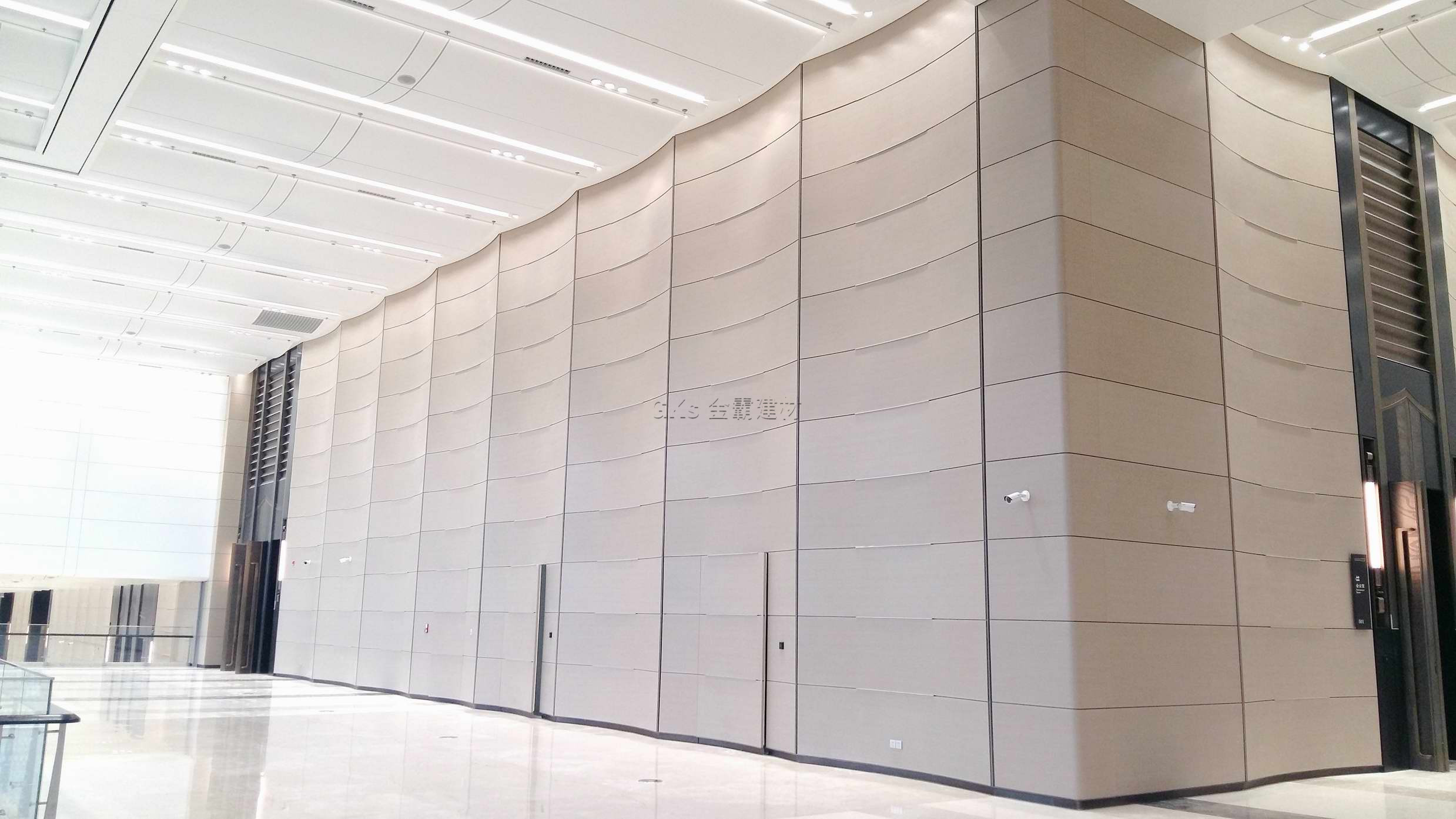 博览中心内部装潢气派不凡,既体现了现代的气派与新颖,又保留了传统文化艺术的局部细节,彰显文化气息。展厅外的休憩区域吊顶,是由许多个半弧形铝板排列组成,如云海层叠,又如一段段丝绸缎带飘挂于空中,充满想象。展厅外墙的饰面采用内弯弧形方板与弧形冲孔方板相隔排列,既能满足吸音降噪的需求,又能配合整体造型。湖水般涟漪波纹的墙面造型,正好呼应了吊顶的波浪层次。