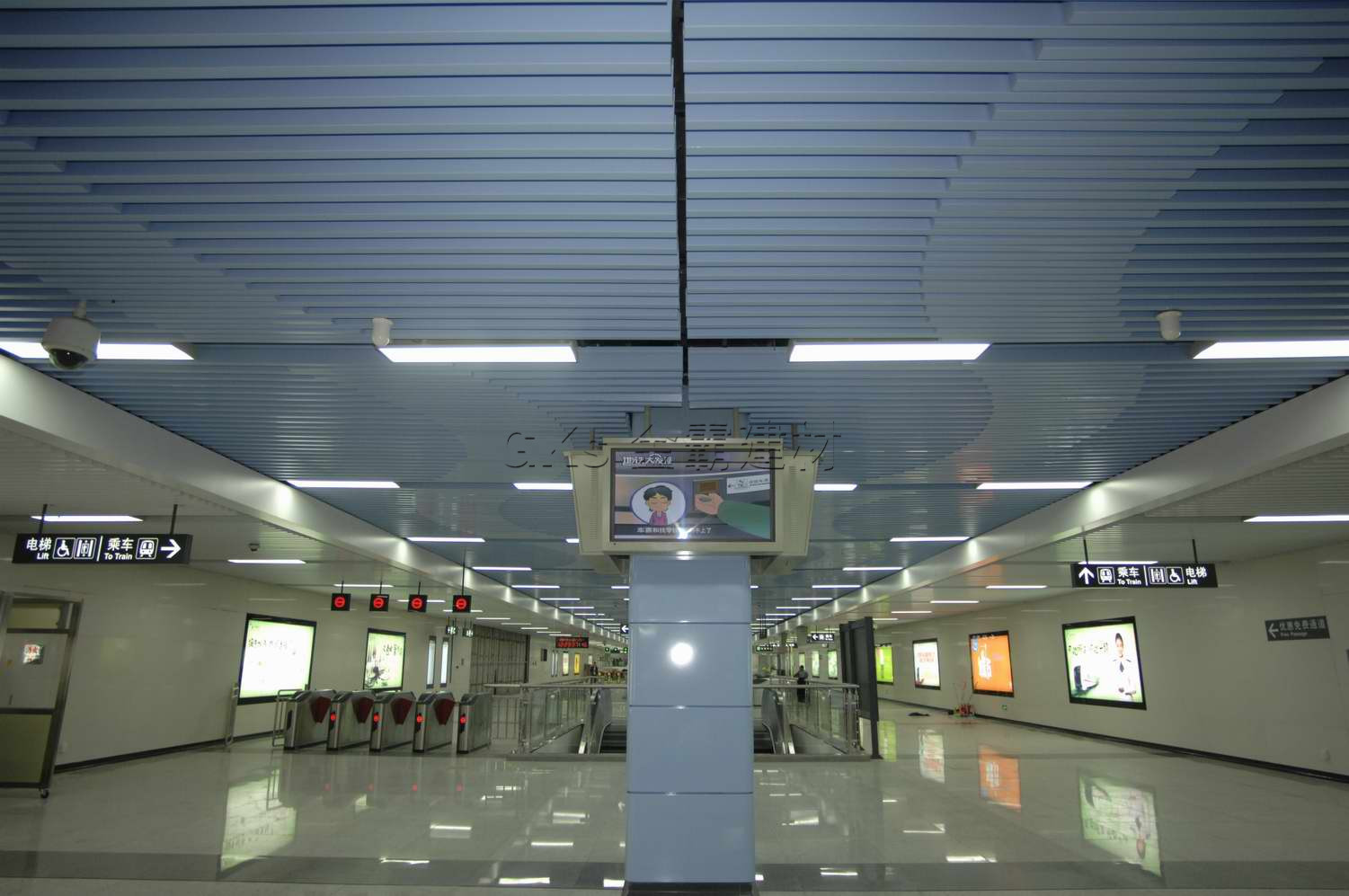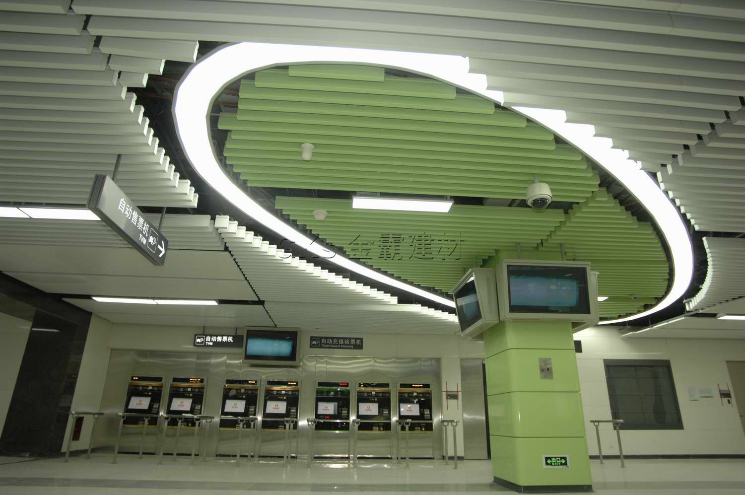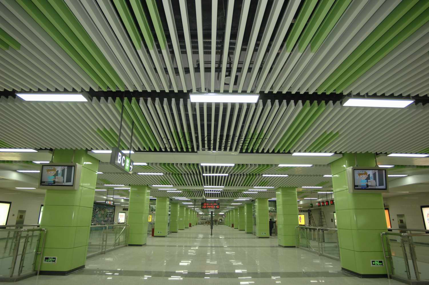 深圳2号线的站台站厅吊顶,基本采用铝合金垂片为主,运用不同的色彩以及排列形态组合出各种别具一格的吊顶图案,给地铁站带来更多的时尚与动感。如东角头站的绕柱的方形LED灯、湾夏站的金字型绿白相间吊顶、蛇口港站的粉蓝“S”形吊顶、水湾站的圆垂片与圆形LED灯组合,登良站的垂片与椭圆LED灯组合等。整条线色彩以粉色调为主,凸显了清新、优雅、活力的精神面貌。