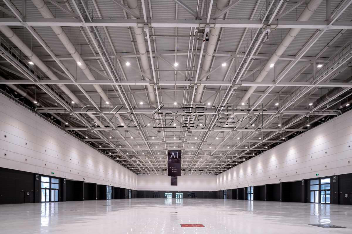 中国· 红岛国际会议展览中心是由德国著名设计公司GMP根据第五代会展综合体定位设计的。室内展览面积15万平方米,共设有14个展厅。其中,西侧4个无柱式单层展厅,东侧展厅为复式结构,首层5个展厅设有立柱,二层的展厅为无柱空间,可满足各种国际级展览、会议的需求。双层展馆部分采用了双首层设计,拥有独立的物流及人流通道。展厅两侧通廊设有服务处、餐饮区、商务区、休闲区,功能布局高效。室外展览面积20万平方米。