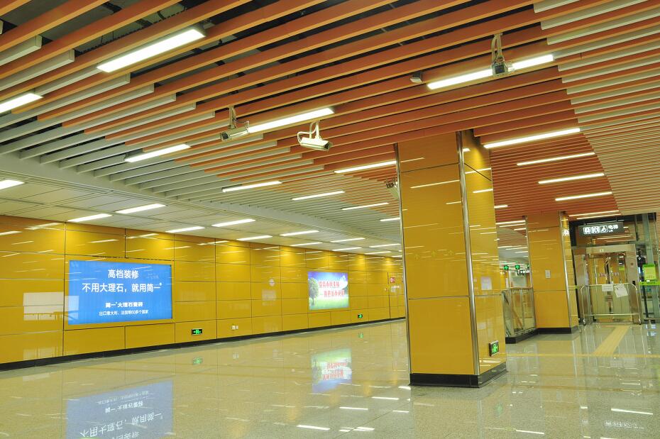 2016年5月27日东莞市轨道交通R2线全线建成试运营,金霸供应全线金属吊顶和广告灯箱/导向标识产品。
