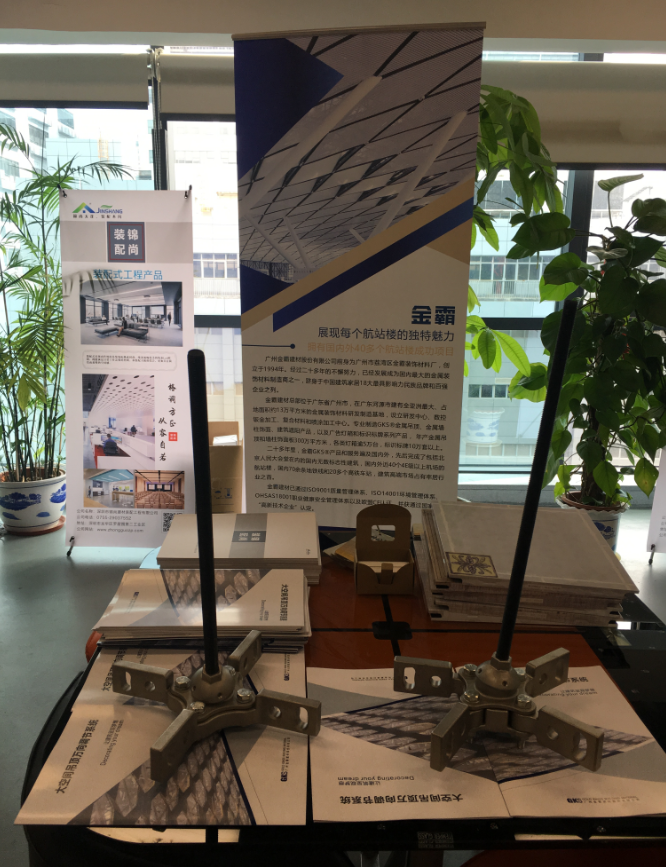 深装总分会场设在深装总创意设计园,园区入驻企业80多家,包括建筑装饰行业领军企业“深装总建设集团股份有限公司”以及60多家建筑装饰企业,是一个集办公/设计研发/成果展示/设计成果孵化及市场推广为一体的创意设计链综合体。金霸此次参加深装总分会场机场航站楼主题区的天花吊装产品展示,向众多参观者展示金霸已获得专利授权的超大空间吊顶专用连接件——万向调节系统。