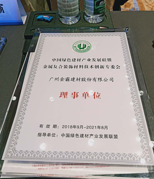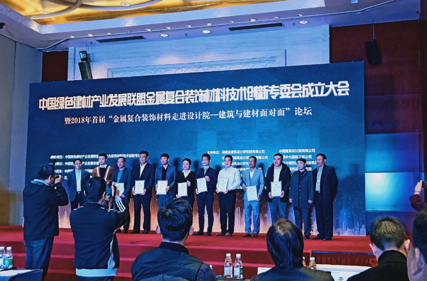 中国绿色建材产业发展联盟金属复合装饰材料技术创新专委会成立大会暨2018首届“金属复合装饰材料走进设计院——建筑与建材面对面”论坛,于本月17日在北京隆重举行。乐鱼平台正式加入绿色建材产业发展联盟,成为技术创新专委会理事单位,并获颁绿色建材选用产品商标