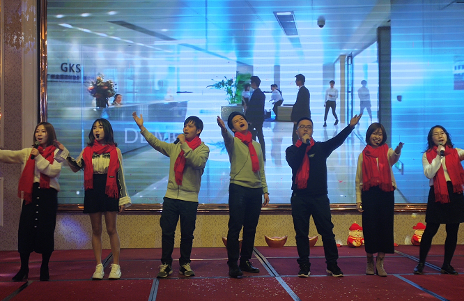 广州总部办公室同事为大家献唱《把明天握在手里》