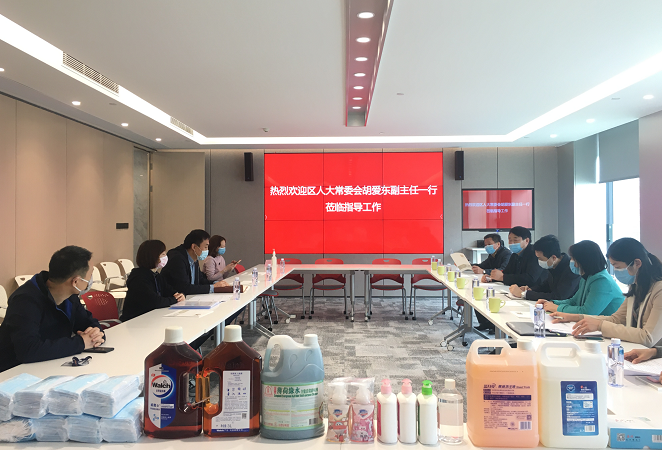 3月5日下午,荔湾区人大常委会胡爱东副主任等一行6人,来到我司总部检查指导复工复产防疫工作情况,并带来一批防疫物资赠与我司。公司副总张志明先生及相关部门负责人接待了胡主任一行人。