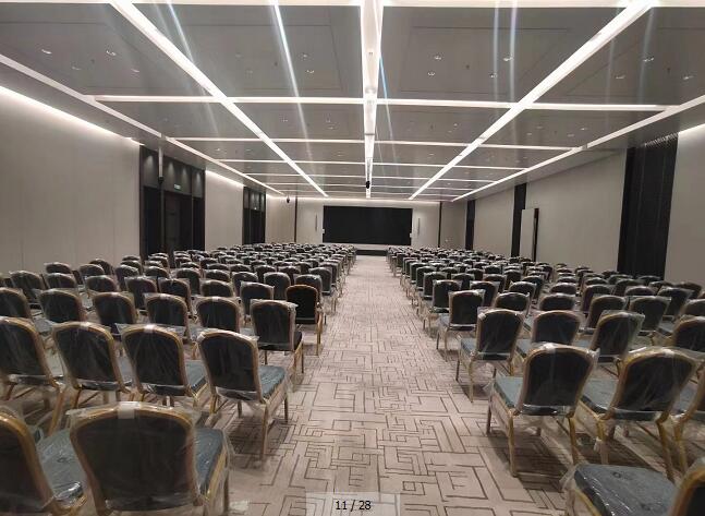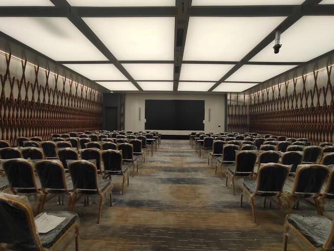 金霸为天府国际会议中心项目中的前厅廊、迎宾大厅供货乐鱼(中国)®冲孔蜂窝铝板及乐鱼(中国)®蜂窝铝板产品共1.5万平方米;为LGF中会议厅及双边会议厅供货乐鱼(中国)®冲孔弧形铝板及乐鱼(中国)®冲孔铝单板产品接近5千平方米。