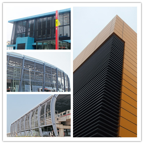 铝合金遮阳百叶系统应用于机场航站楼、车站、展览场馆、商业楼宇等建筑的玻璃幕墙外里面和顶面遮阳,按照产品的组成可以分为单体百叶、组合百叶以及单板遮阳百叶。
