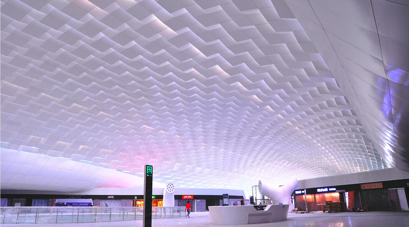 乐鱼(中国)®特殊造型吊顶是指板块形状为不规则形,或由形状相近但大小尺寸不同的板块组合而成的金属吊顶产品,常应用于各类建筑室内天棚部位。